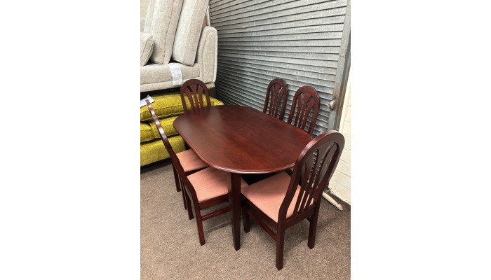 150cm x 90cm Mahogany Finish Oval Top Dining Table & 6 Chairs